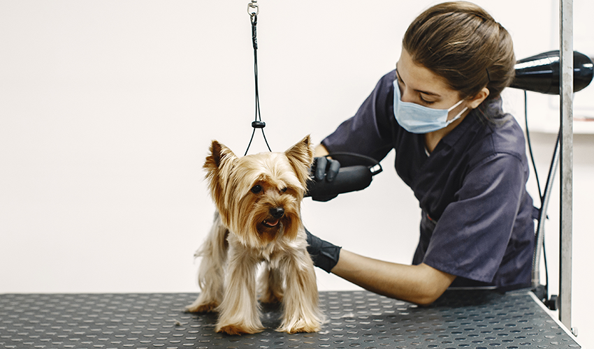 A complete grooming session typically includes a bath, coat brushing, hair trimming, nail trimming, ear and eye cleaning, and optional spa treatments like paw massages or aromatherapy baths. Each service is tailored to your dog’s breed, age, and individual needs.